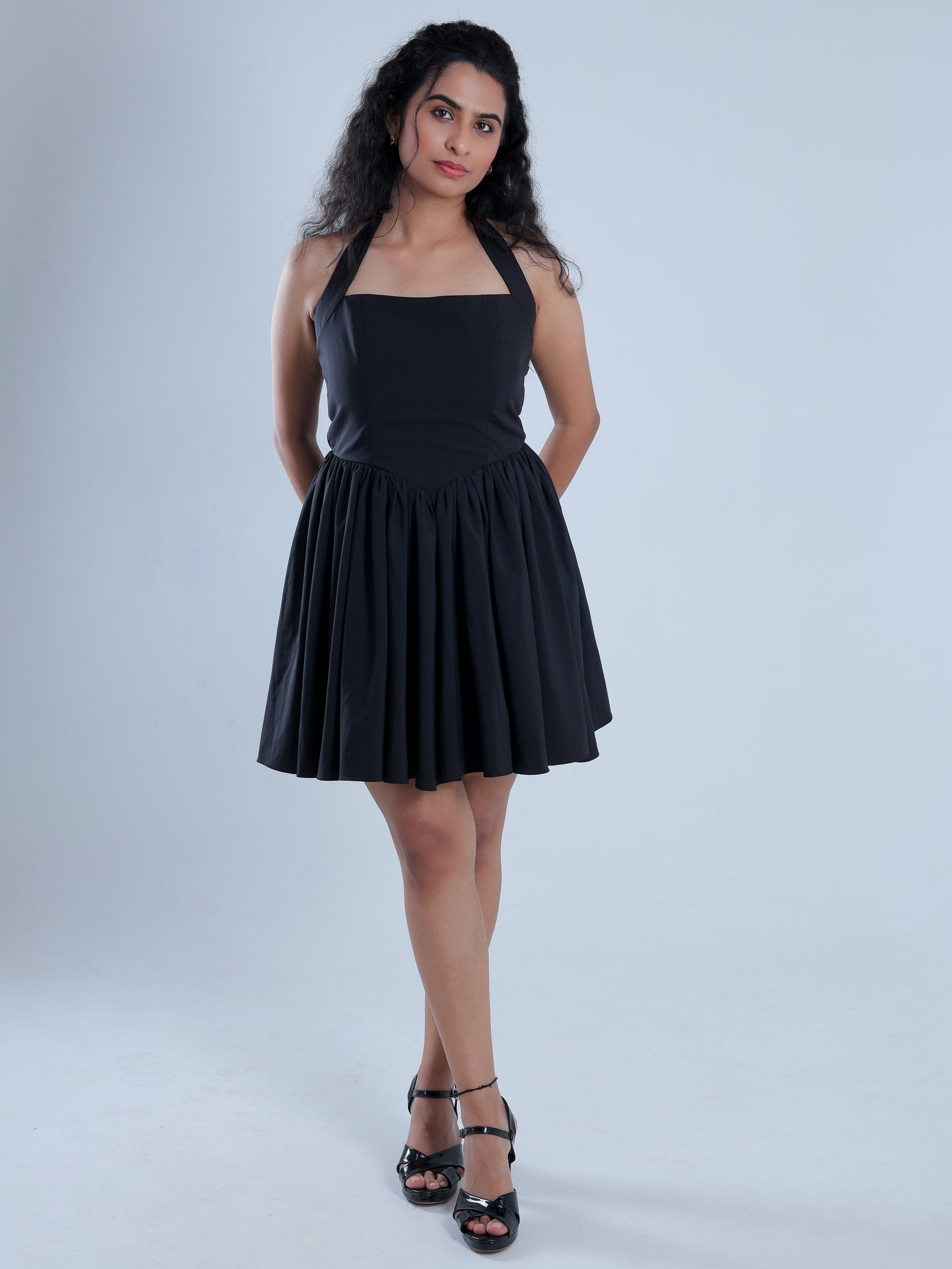 Perfect for brunches, evenings, or that moment you want to feel unstoppable, the black halter neck flare dress balances structure and flow like no other.